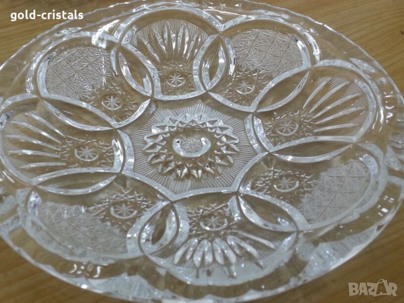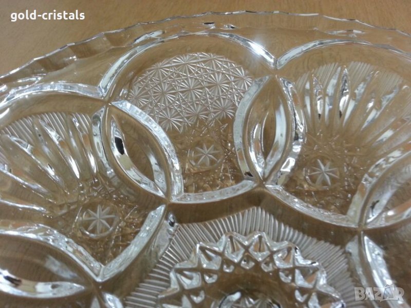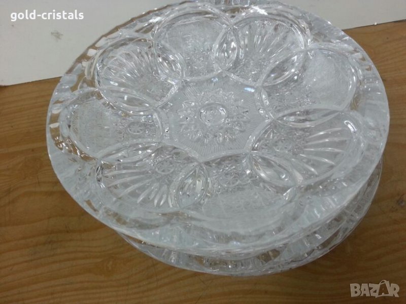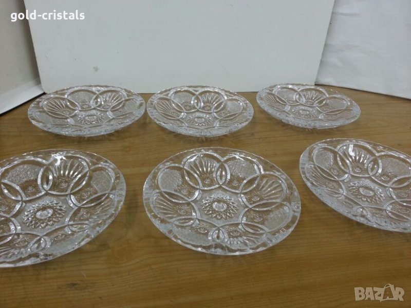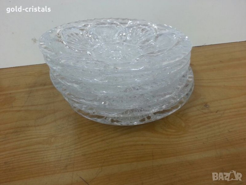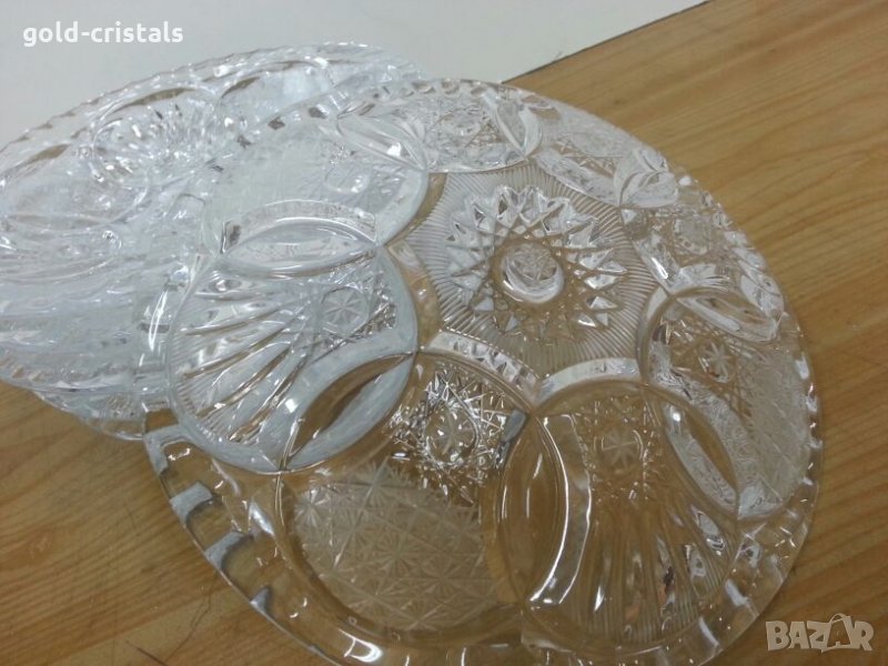 Сервиз кристални чинии купички 6бр масивен тежък кристал кристално стъкло ръчно гравирани комплект сет лот ретро арт декор винтидж колекция стари старинни антикварни предмети обзавеждане за дома и семейството подходящи за подарък за ценители и колекционери