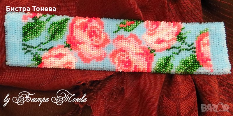 Шие се гобленов бод, като на всеки бод се нанизва мъниста.