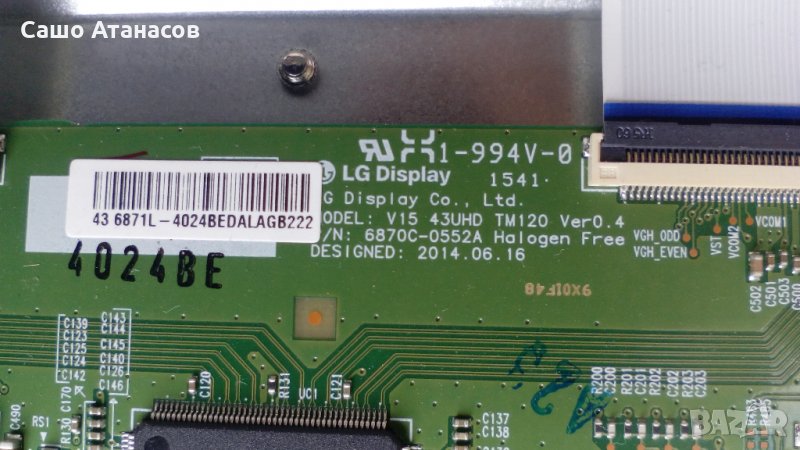 T-Con Board: V15 43UHD ТМ120 Ver1.4 ( 6870C-0552A Halogen Free ) ( 6871L-4042B ) - 55лв.