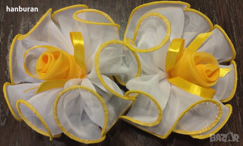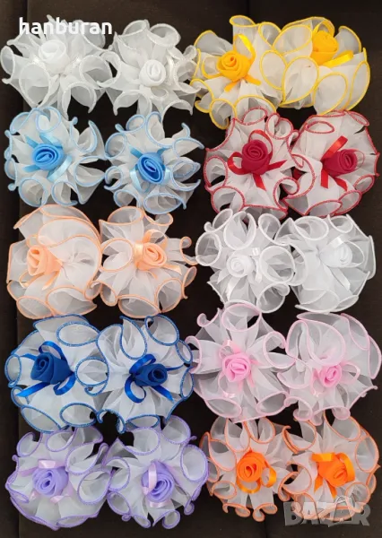 Много красиви панделки за коса. Цената е за комплект от два броя. Диаметър - 10см.