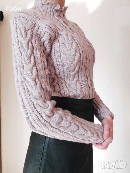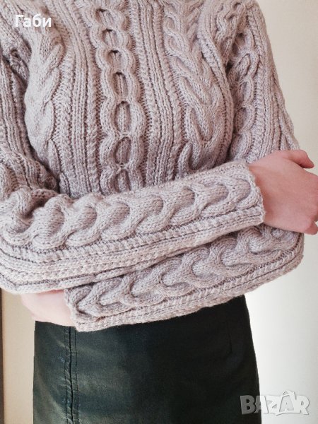 Ръчно плетен пуловер с аранови елементи → Обява 22697099