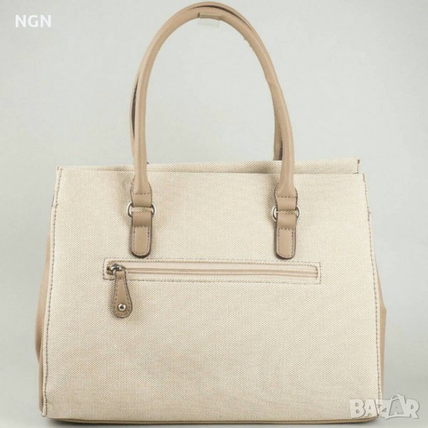 Атрактивен модел дамска чанта с иновативна и модерна визия. Чисто нова с етикет, бежов цвят, комбинация лен и кожа. Чантата разполага с дълга регулираща дръжка. Супер качество и топ намалена цена, промоция само за 25,00 лева.