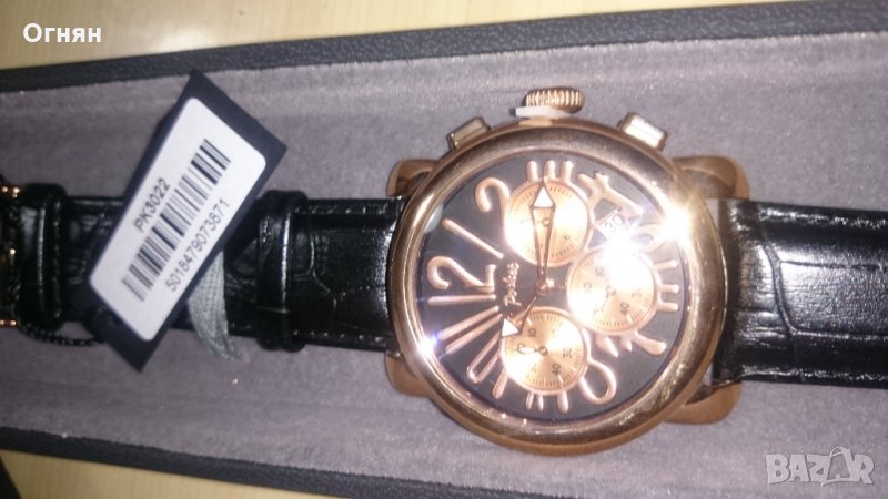 3D повдигнати индекси в розово злато "numals"набрани в тон с черно колело, минерално стъкло, Диаметър 50мм, неръждаема стомана спокритие с PVD розово злато, дебелина 11мм,каишка от кожа 23мм, Секундата стрелка на 6 часа, дата, Хронометър, 50м водоустоичив