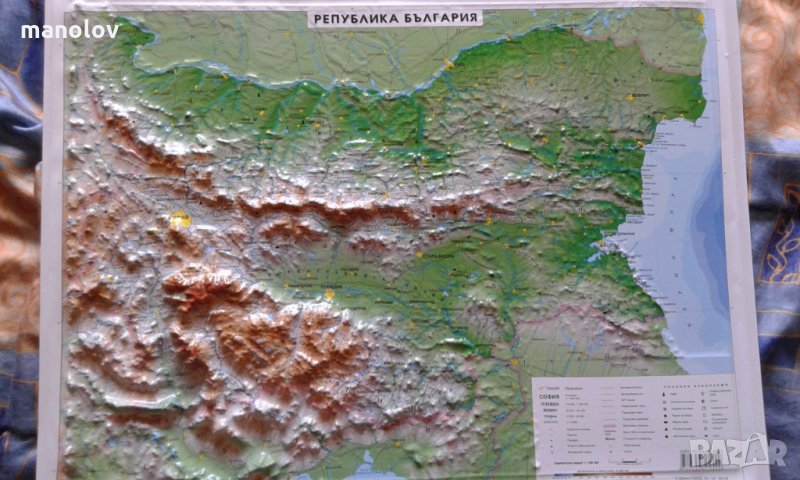 карта на България размер57/44см. мащаб 1:1 000000 Фирмата предлага голям избор на стенни карти Географски и Исторически Всичките карти са ламинирани двустрано и с различен размер с лайсни и връф за закачане. Направете запитване на контакти.Най продаваните са на България,Европа,Балкански полуостров,Света.Природогеографски Политически.Минимална доставка100лв.За София лично предаване иначе Спиди и Еконт.Отстъпка 12% от Стенни карти..Релефна карта на България размер108/80см. с лайсни и връв за закачане цена 110лв./56.24€. Мащаб хоризонтален 1:570000,вертикален 1:90000.Луксозно издание с рамка цена 156.00лв./79.76€.размер 110/82см.