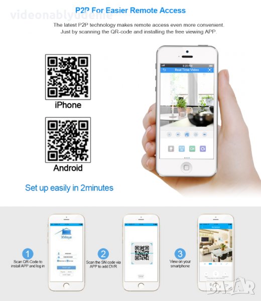 Камерата е с вградена операционна система, която позволява да се достъпва от цял свят от Смартфон, Таблет, Смарт телевизор, Компютър и т.н. само с въвеждането на серийният и номер!