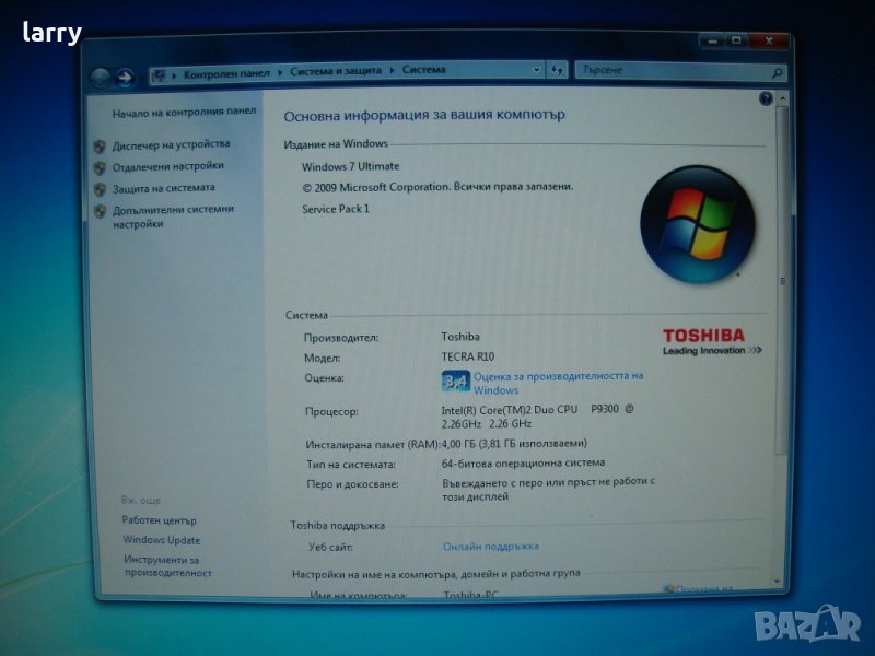 Батерия: PA3692U-1BRS 10.8V 56Wh износване 84%, държи 20-30 мин - 15лв