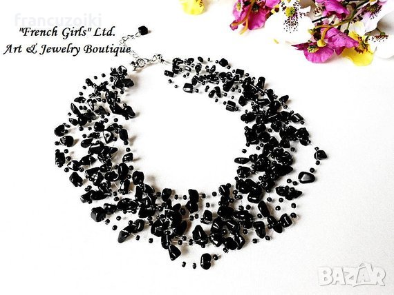 Колие от естествени камъни - Черен оникс - многоредно → Обява 22735125