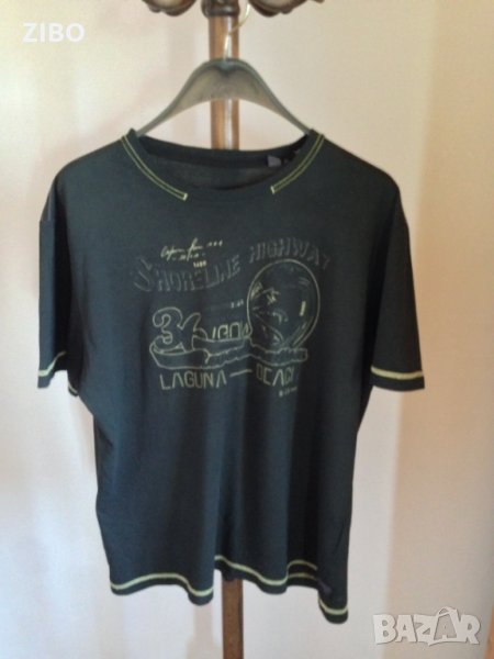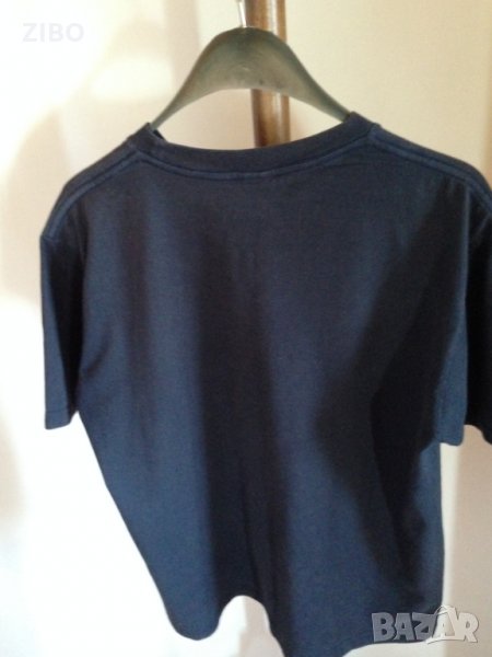 № 5 - тъмно синя тениска в много добро състояние без забележки . Размер L/ Размери -гръб от шева на яката до долу- 66 см. , дължина отпред от шева на яката до долу - 60 см. , ширина от мишница до мишница -57см.