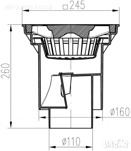 Канализационен сифон с чугунена решетка - прав → Обява 22755260