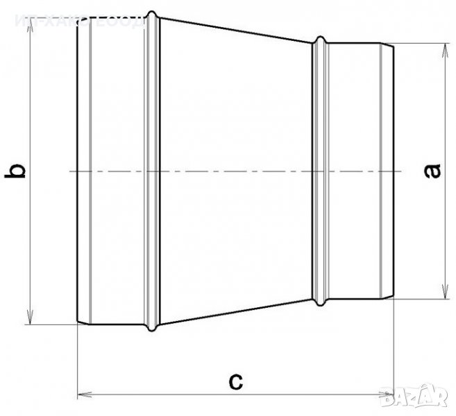 Приложение: Металната редукция служи като преход между кръгли тръби с различни диаметри.