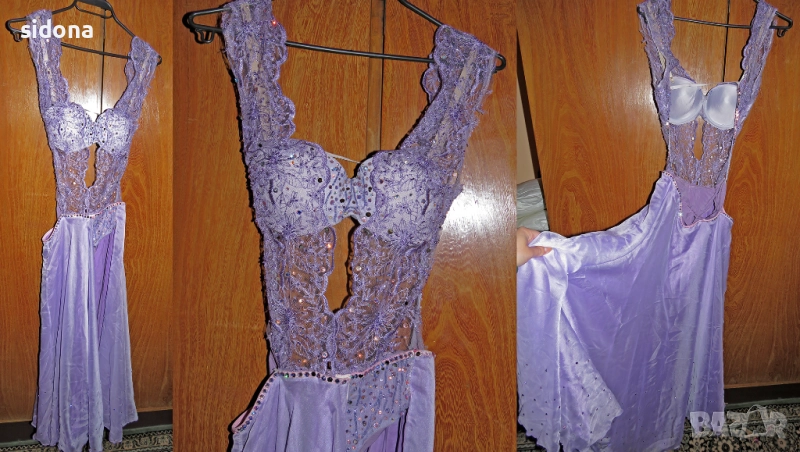 Рокля "Люляк".Лилава рокля от дантела,шифон и сатен,декорация от множество камъни,има цепка,с оформен