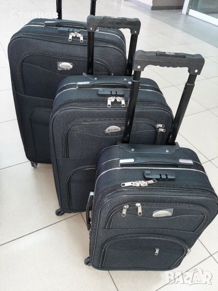 Продавам текстилни куфари с 4 колела и външен механизъм на телескопичната дръжка.Размери Голям - 75х47х27 см тегло 3,400 кг Среден – 67х39х23 см тегло 2,600кг Малък - 55х35х20 см тегло 2,100 кгМалкият размер е идеален за ръчен багаж Цветове: черен, бордо,син,сивЕдинична цена : голям -30€,(58.67лв. ) среден-25€,(48.89лв) малък 55 см.- 20€(39.12лв.) Вече и куфари за ръчен багаж 40х30х20 см.на цена 23€(44.98 лв) Изпращам по Еконт,