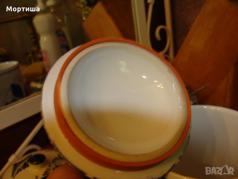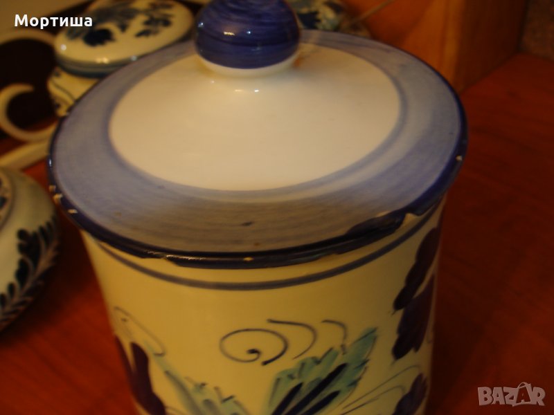 Голям Немски порцеланов буркан за бисквити или каквото решите противовлагова лента на капака с вместимост 750 мл Височина 13 см диаметър отвор 11 см Има леки забележки по ръба на капака снимани ,съобразено е с цената БЕЗ КОМЕНТАР И БАРТЕРИ