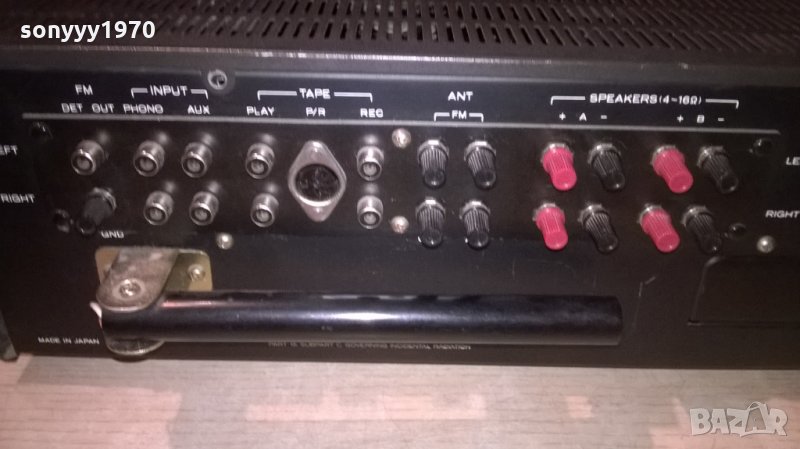 здрава транзисторна японска машина-тунер усилвател с изходи за 4 тонколони-нов внос и свири много здраво-без ремонти-жестока зелена скала и здрава подсветка-от днес 28.02.22г пращаме със спиди или еконт с преглед и тест след превод на капаро за куриерската услуга поради зачестили некоректни потребители-поръчки само в тук в саита! по телефона и със смс не! краини цени! бартери не правиме! всеки ден нови неща-още 2-3 наши обяви тук