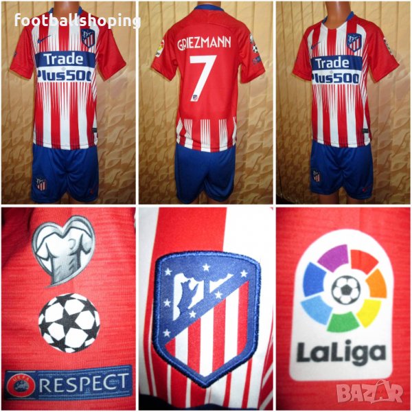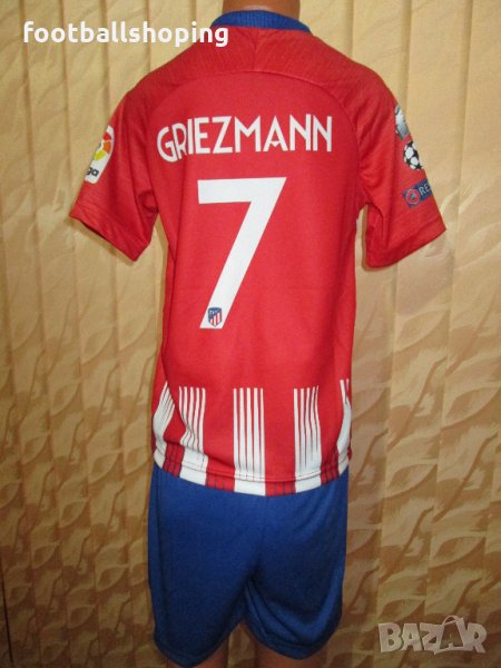 Ретро детски къси екипи на ПСЖ с Буфон и Атл.Мадрид с Гризман.Материя : Полиестер лукс !!! 100% качество на изработка.Изпращаме до офис на Еконт.Размери : Атл.Мадрид Сезон 2019 Гризман - 176 номер и ПСЖ Буфон Сезон 2019 - 116 номер.Моля разгледайте и другите обяви в профила ми или посетете facebook страницата ни FOOTBALLSHOPING :)