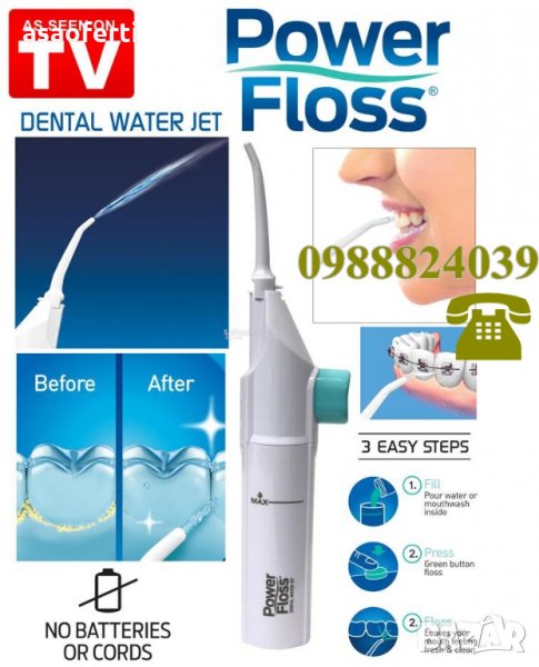 Почиства недостъпните места между зъбите и пародонталните джобове. По този начин се бори срещу появата на кариеси, заболявания на венците и лошия дъх. Не са необходими батерии или захранване. Бързо и лесно просто напълнете с вода. Душовете за орална хигиена Power Floss са идеални за хора с металокерамика, импланти, заболявания на пародонта, по време на ортодонтско лечение и за всички останали, които желаят да поддържат перфектна орална хигиена!