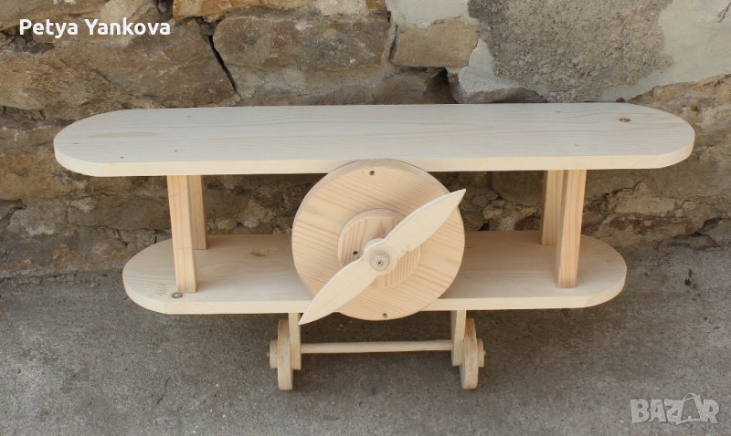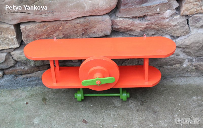 дървена етажерка самолет за детска стая, дължина на горното крило 70 см., може да се направи в цвят по желание