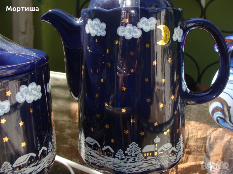 Немски Нов лот гланцирана керамика огромен буркан висок 13 см вместимост над 750 мл за сладки и кана висока 17 см с вместимост над 2 литра ръчно рисувани .Нови не ползвани Крайна цена без бартери
