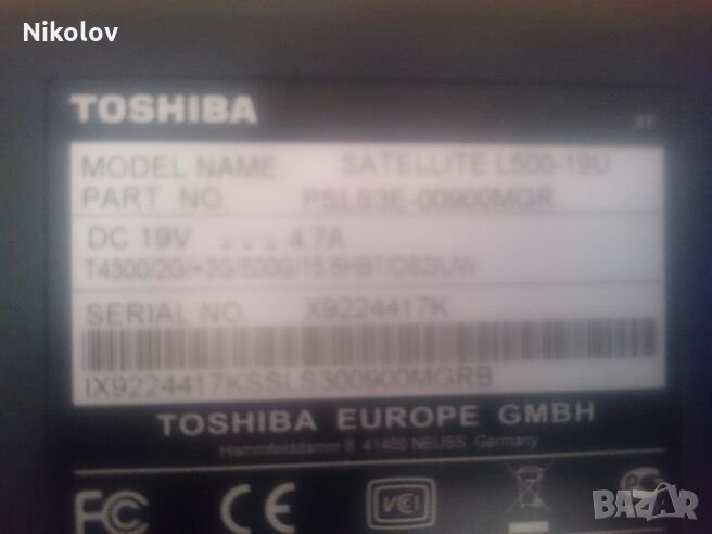 TOSHIBA SATELLITE L500-19U Лаптоп на части → Обява 22816179