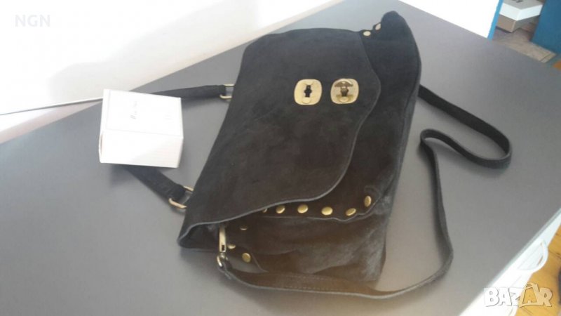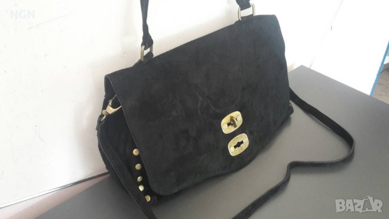 Чисто нова уникална, атрактивна и модерна дамска чанта, изработена от черен естествен велур. Супер иновативен, дизайнерски модел, италианско производство. Чантата има допълнителна дълга регулираща се дръжка. Фешън модел с размери : височина 24 см., ширина 39 см. Топ модел на промоционална, намалена цена, закупена за 129 лева.