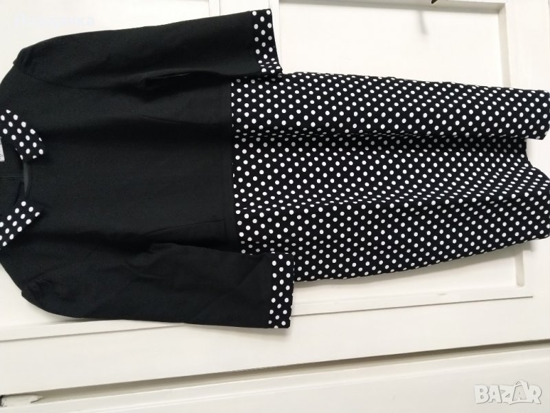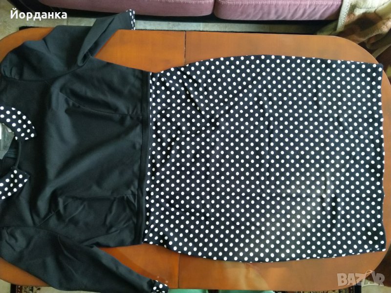 Бюст от 111 до 116,талия от 94 см до 98 см.Брошката върви към роклята и е в кутия.Горната част е по-плътна от долната.Дължина 105см..