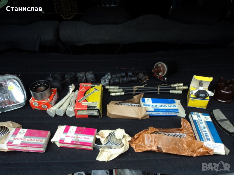 Части за рейка( лагерчета,капачки,корпус,бутало,пиньона,пружина) има ги в снимките 70лв./ Феродов диск употребяван с феродо ново-20лв.бр. / Бутала спирачен цилиндър нови15 лв.бр./ Лагери главина нови-15лв.бр./ Дистрибуторна капачка нова -10лв. / Основни лагери втори ремонт нови 30лв.комплект./ Бубина - 5лв / Фар употребяван - 15лв. / Части от двигателя . / Комплект задни накладки - 45 лв. / Кранчe за парно употребявано - 10лв. / Ремонтен компл.за бензинова помпа нов - 25лв. / Температурен датчик употребяван - 10лв.бр. Маслен датчик нов- 15 лв. Маслен датчик употребяван - 10лв. / Камбанки за кабели за свещи комплект - 6лв.бр. / Гумички за клапани комплект -15лв.бр. / Обезвъздушител за спирачки - 1лв.бр. / Семеринги малки -4 лв.бр. / Семеринги голями-5 лв.бр. / Пластмасови втулки за кормилна рейка - 5лв.бр. / Алтернатор употребяван - 50лв. Ключ чистачки - мигачи ( от волана) употребяван - 45 лв. /Стоп машинка употребявана - 15 лв./ Дръжки вътрешни от вратите - 10 лв. за бр. Бензинова помпа употребявана - 35 лв./ Казанче за антифриз употребявано - 20 лв. / Дръжки за тавана в купето - 10 лв. за бр.