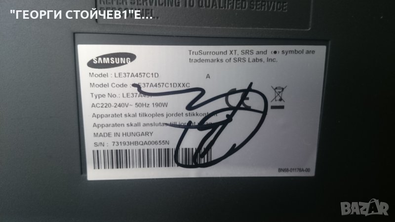 SAMSUNG LE37A457C1D СЪС СЧУПЕНА МАТРИЦА → Обява 22826070