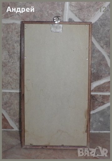 Детско огледало с кафява дървена рамка.Размерите са:дължина-12 см.,височина-21,5см.,ширина-1 см.В средата на горния край има лек дефект в огледалото-черна точка.А в долния край има залепен стикер на майка хранеща детенце. А под него е изписано името-Сара Кей...
