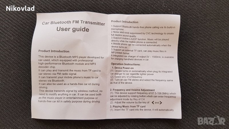 1 x Bluetooh FM предавател