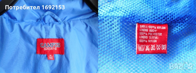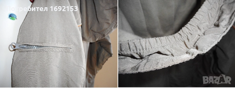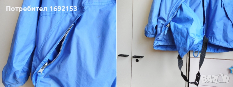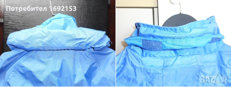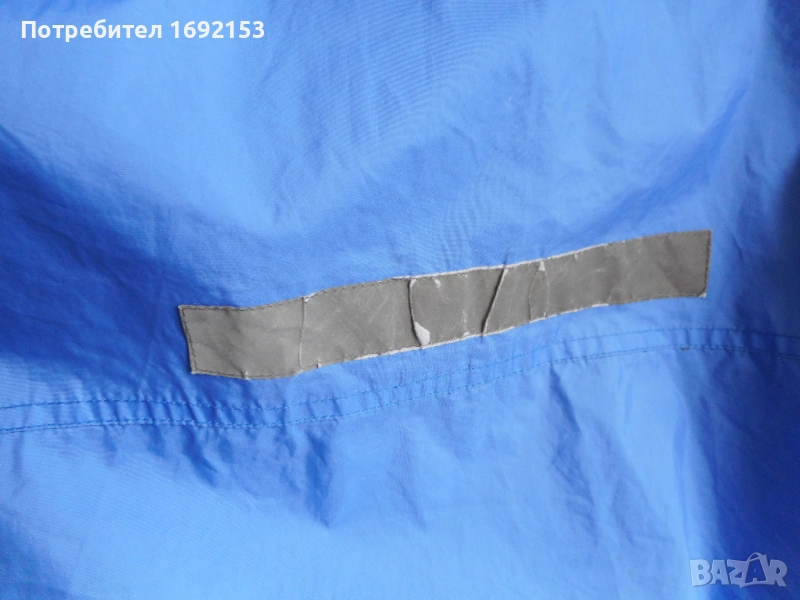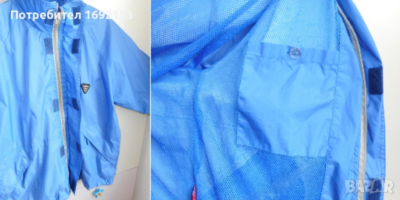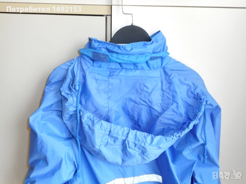 Не пропуска вода при не силен дъжд. Якето е с памучна подплата. Джобовете са стабилни - с ципове, като има малко джобче и на ръкава. Качулката не е подвижна и е с допълнителен ластик за по-плътно прилягане на главата. Циповете са в изправност. Няма петна. Цената е такава, защото на шева на качулката от долната страна има съвсем леко разшито, което при невдигната качулка не се вижда и не пречи по никакъв начин на функционалността и визията на якето.