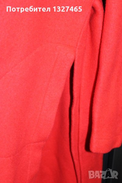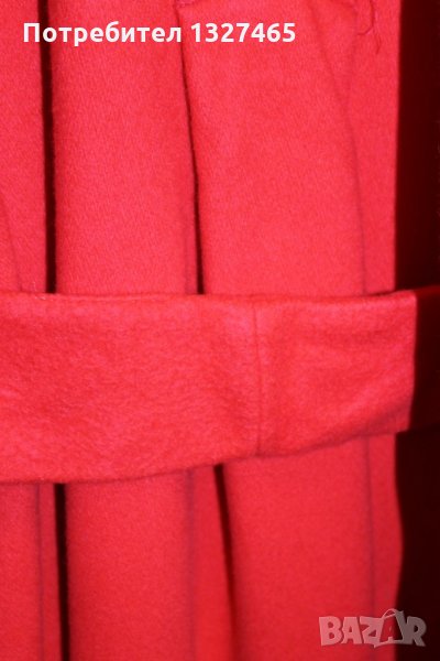 Червено,дълго с колан,който минава от вътрешната страна ,от бедрата надолу отворено, интересни джобове,почти ново