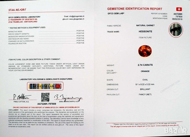 Хесонит Гранат2.74карата със сертификат → Обява 22849345