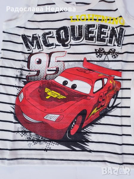 Страхотен памучен комплект бельо за момче - потник с апликация на Макуин отпред и слипчета. Размер - 98 см.