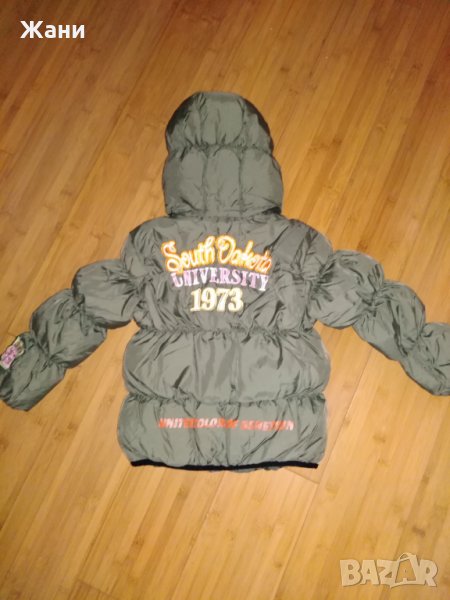 Якенцето с гъши пух. Като ново е.Обличано броени пъти.Много е топло.С него вашето съкровище ще е на топличко.Цветът е войнишко зелено.
