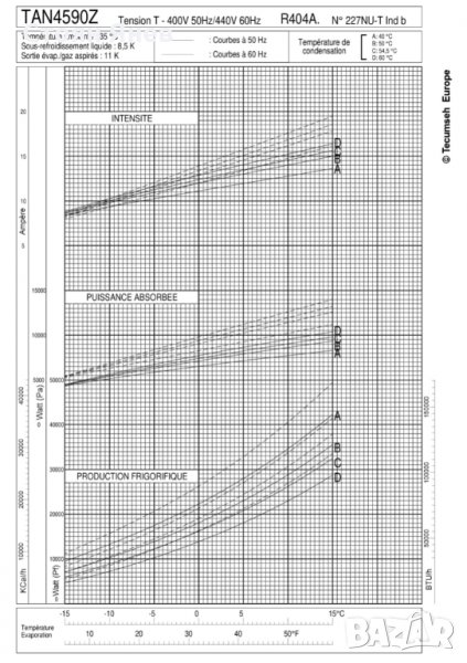 Характеристики при при 50 градуса кондензация и 5 градуса изспарение и фреон R404a