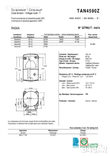 Хладилен компресор Lunite Hermetique TAN4509Z