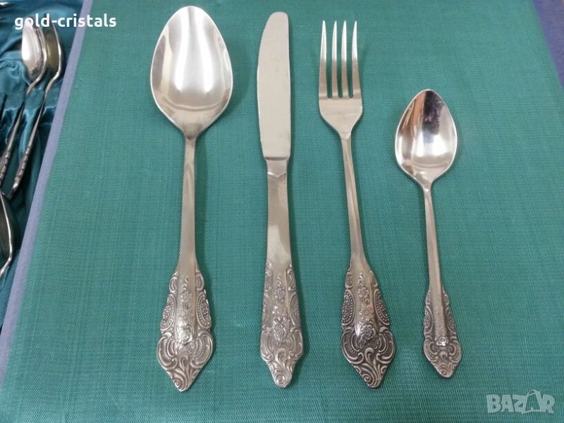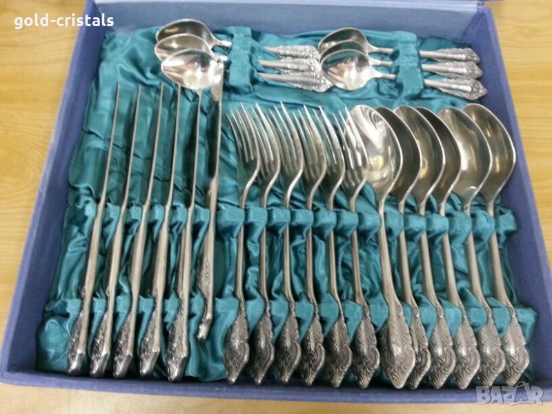 Старинни руски прибори за хранене в дървена кутия вилици лъжици ножове лъжички съветски ссср маркирани неръждаеми масивни дебел материал сервиз комплект сет лот ретро арт декор винтидж колекция стари старинни антикварни предмети обзавеждане за дома и семейството подходящи за подарък за ценители и колекционери
