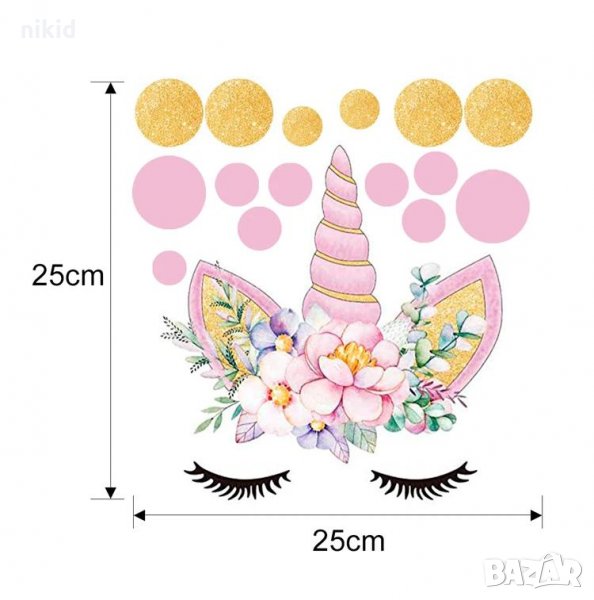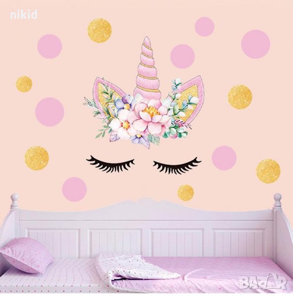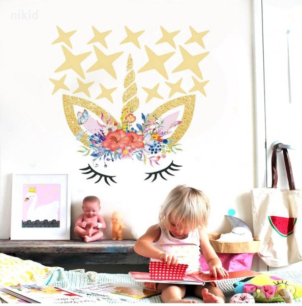 Еднорог самозалепващ стикер за стена и парти украса лепенка в 3 разцветки → Обява 22888446
