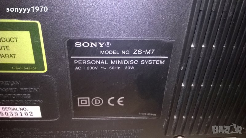 sony zs-m7 minidisc/cd/tuner/amplifier/aux-внос швеицария