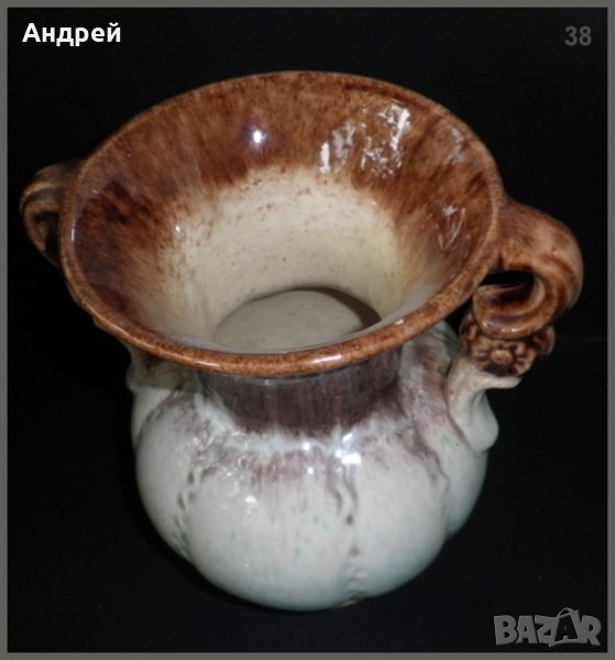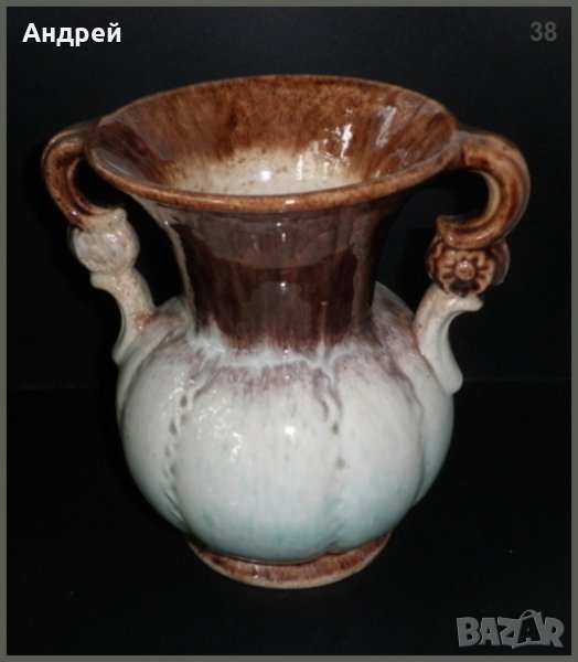 Голяма и красива керамична ваза с формата на амфора Размерите са: височина-20,5 см.,диаметър-15 см. Ако разцветката и „древния” стил на вазата пасва на интериора на вашия дом,тогава тя е предмета, с който да освежите, и разкрасите обстановката,,,Тя е изпълнена в шоколадово и нежно резедаво.