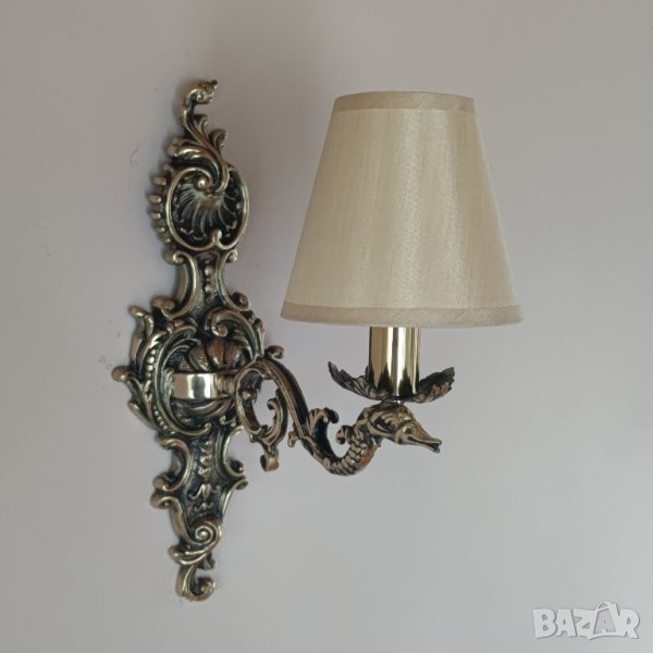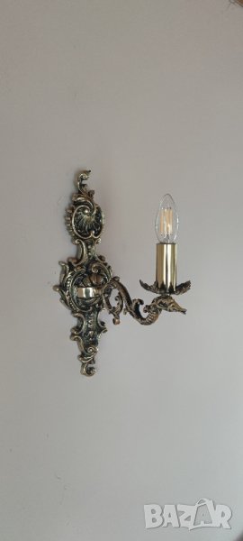 СЕРТИФИКАТ за произведение на занаятчийството _ Фирма ЕТ”Орион–Недков” гарантира ,че това изделие е направено от високачествен лят месинг и е изцяло ръчно изработено ,чрез технологията леене в пясъчни форми.Последващите довършителни обработки на детайлите отново се извършват ръчно. Чрез патиниране на метала се получава неповторим старинен ефект. Използваната автентична технология на производство, гарантира здравина и автентичен външен вид_ Допълнение към полилеите от моите обяви в стил шаби шик . Възможна комбинация и с настолни лампи в съшия стил . Цялостно обзавеждане със стилни и различни от всички останали осветителни тела. Предлагат се и аплици за стена ,настолни лампи, единични висящи лампи(пендел) свещници в същия класически стил(шаби шик , ретро , винтидж )