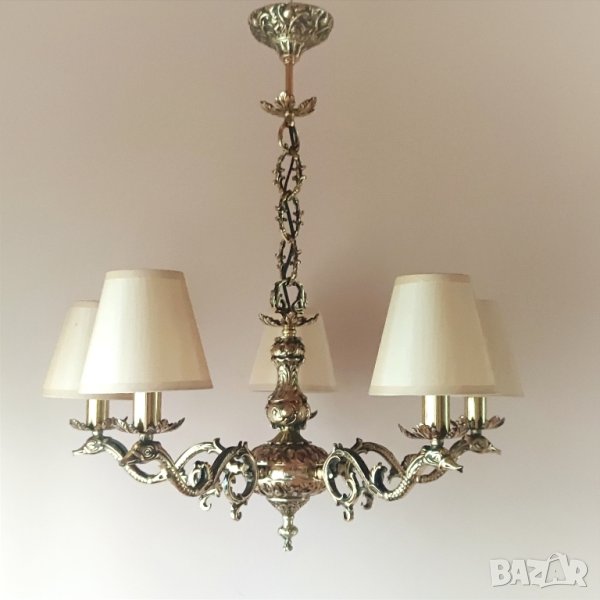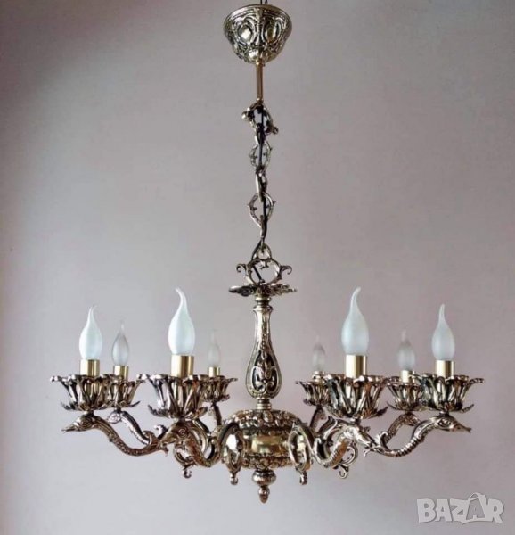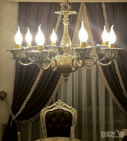 Старинен барок.Луксозно класическо осветление за хол,всекидневна -месингов полилей, лампа