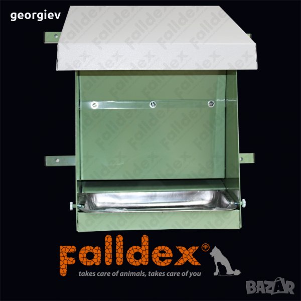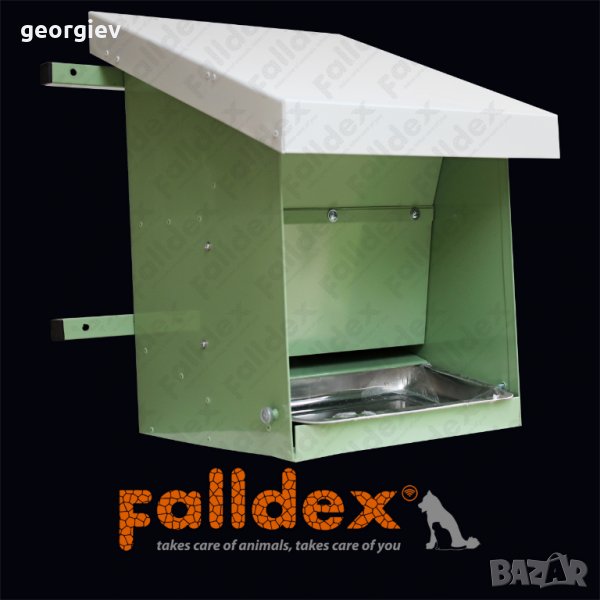 Хранилката е изработена от поцинкована ламарина, прахово боядисана.