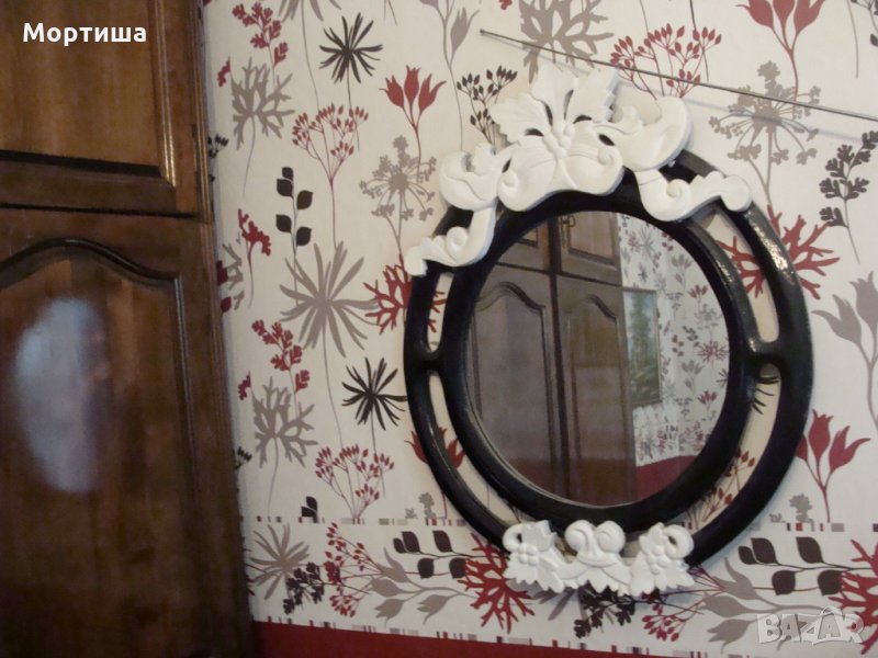 Дървено масивно ръчно изработено огледало испанско красиви орнаменти Обща големина с орнаментите 70 на 60 см диаметър само на огледалото 38 см САМО ЛИЧНО ПРЕДАВАНЕ