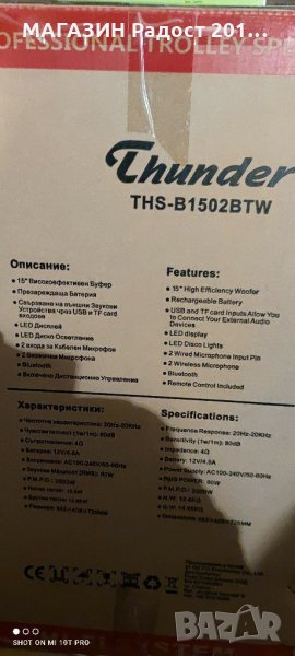 Преносима Караоке Тонколона THUNDER THS-B1502BTW ЧИСТО НОВА С ГАРАНЦИЯ