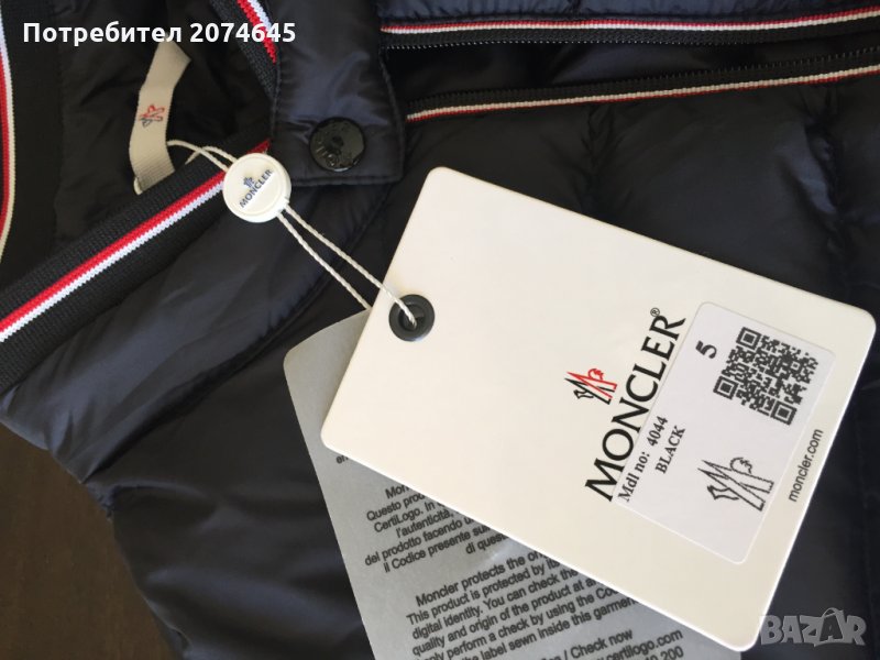 MONCLER грейка/яке.Размер 5-отговаря на XXL дължина-70 см./от мишица до мишница-64 см .Цвят черен.Купена е от летището в Катар за подарък.Има всички водни знаци баркодове за автентичност.Знам колко реплики се продават моля разгледайте снимките опитала съм да заснема повечето етикети за да се види че е автентично.