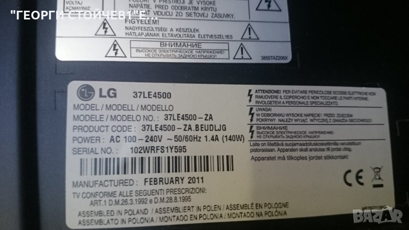 LG 37LE4500 СЪС СЧУПЕНА МАТРИЦА, снимка 1 - Части и Платки - 22954747 LG 37LE4500 СЪС СЧУПЕНА МАТРИЦА, снимка 2 - Части и Платки - 22954747 LG 37LE4500 СЪС СЧУПЕНА МАТРИЦА, снимка 3 - Части и Платки - 22954747 LG 37LE4500 СЪС СЧУПЕНА МАТРИЦА, снимка 4 - Части и Платки - 22954747 LG 37LE4500 СЪС СЧУПЕНА МАТРИЦА, снимка 5 - Части и Платки - 22954747 LG 37LE4500 СЪС СЧУПЕНА МАТРИЦА, снимка 6 - Части и Платки - 22954747 LG 37LE4500 СЪС СЧУПЕНА МАТРИЦА, снимка 7 - Части и Платки - 22954747 LG 37LE4500 СЪС СЧУПЕНА МАТРИЦА, снимка 8 - Части и Платки - 22954747 LG 37LE4500 СЪС СЧУПЕНА МАТРИЦА, снимка 9 - Части и Платки - 22954747 LG 37LE4500 СЪС СЧУПЕНА МАТРИЦА, снимка 10 - Части и Платки - 22954747 LG 37LE4500 СЪС СЧУПЕНА МАТРИЦА, снимка 11 - Части и Платки - 22954747 1/11