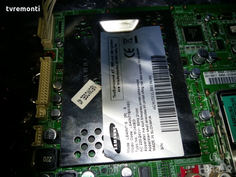BN94-01059b MODEL LE-40N71BX/BWT Display- LTA400WH-LH2 IC-M308AOSGP, QS3125SIG, STV8257DSX, STA323W, TEA6422, TUNER TCLW3001PD32, PI3HDMI, MP1583DN, BA7657F, MAX232EC, PCM1754, 49150WR тесвана от нашия техник