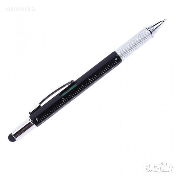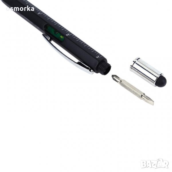 Права и кръстата отверка, нивелир, две линийки в инчове и в сантиметри /7см./, стилус за работа със смартфони и таблети.