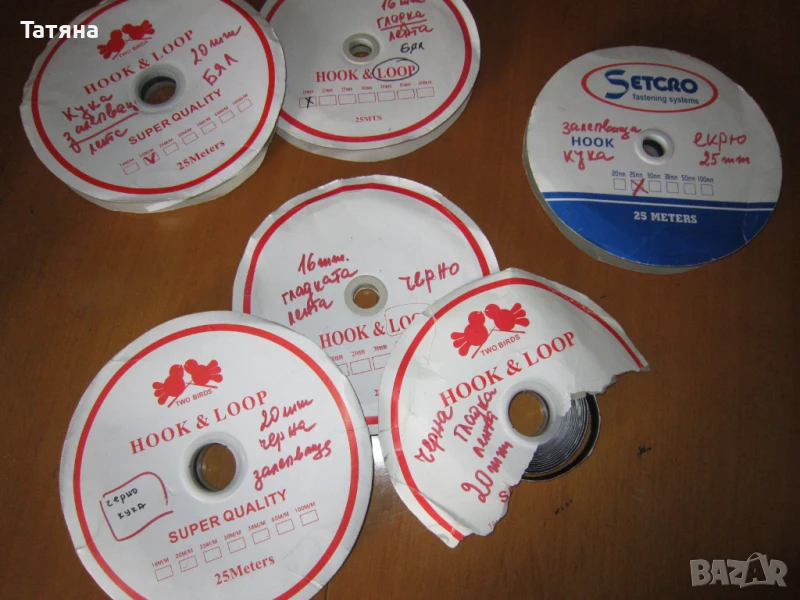 ВЕЛКРО - широко -20мм ; Снимка/ 3-5/ и СНИМКИ -/ 13-18 /куки и гладка лента / 16мм и 20мм ; БЯЛО ;ЧЕРНО;ЕКРЮ. Има и тясна лента /бяла/велкро -кука- 2м;широка 0,5см.Тясната лента не е снимана,при интерес може снимка на VIBER;ЦЕНА 0,50 €/за 1метър;